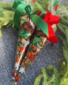 Each festive cone is filled with 6oz of treats—Beef Crunchy Biscuits, Red Velvet Bakery Hearts, Chicken Jerky Bites, and Pumpkin & Blueberry Stars. Every cone is finished with a beautiful satin ribbon in either red or green.